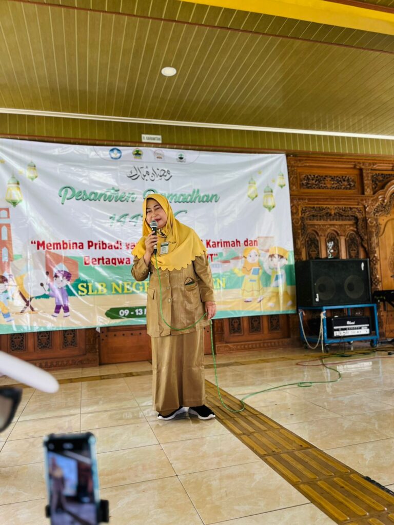 Acara Pesantren Ramadhan ini dibuka oleh Ibu Mardani, S.pd Kepala SLB Negeri Sragen.Ibu Mardani menjelaskan makna Pesantren Ramahan yang diselenggaran oleh SLB Negeri Sragen dan Pentingnya seluruh murid mengikuti kegiatan ini dengan penuh hikmat.